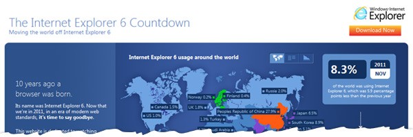 We also saw an interesting move from Microsoft during this time, with a public effort by the company to convince users of IE6 to upgrade their browser through the ie6countdown.com website. When even Microsoft is running a campaign to get users to upgrade from IE6... well... need I say any more? The website is actually an informative little resource that tracks the decline of the much-despised browser. Here's looking forward to 0%!