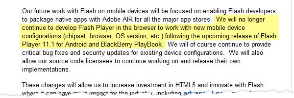 Reports began spreading the evening before that Adobe was set to announce the end of the mobile Flash Player. There were also rumors that the entire Flash Professional team was laid off. Now, rumors are often just that and do not ever actually see the light of day. Many in the community thought that with Adobe being so strong on mobile Flash Player with so many successes that this had to be just another ugly rumor and could not possibly be true.