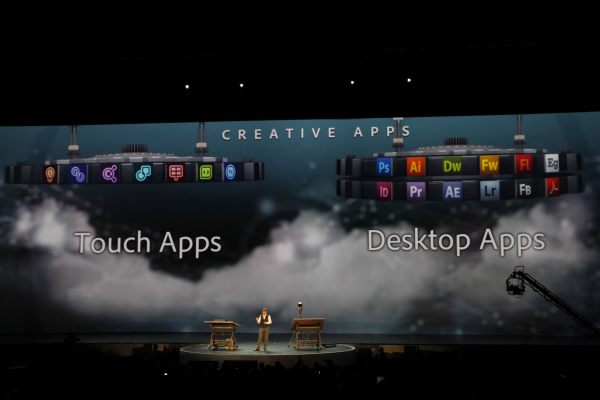 This year Adobe is shifting its focus to mobile and cloud solutions. The first and the main Adobe keynote address was absent of any mention of Flash and very little if anything was mentioned about its other desktop web authoring software solutions. In fact, yesterday's main focus was on Adobe's new Creative Cloud and its new mobile touch applications.