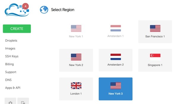 Select the New York 3 Region (it's the one enabled for IPv6):