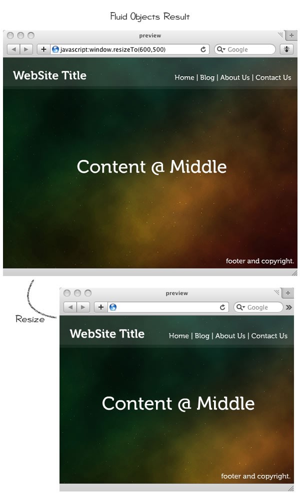 As shown in the image below, all the elements which float according to the browser size will be referred to as "fluid objects".