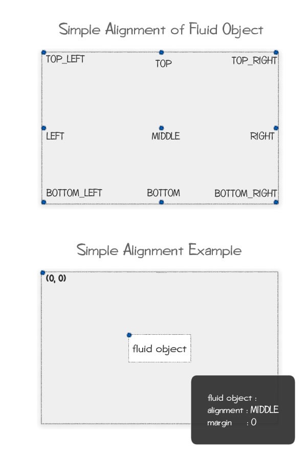 This file extends FluidObject class so that it will provides simple alignment by using names like TOP, MIDDLE, BOTTOM_RIGHT instead of specifying the x,y properties.