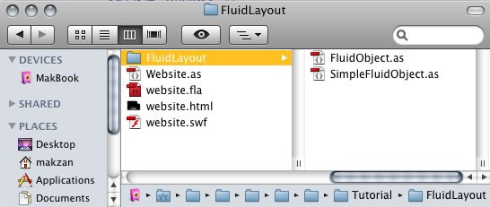 The file structure should be the same as below after you finish this tutorial. Specifically, the FluidObject.as and SimpleFluidObject.as should be in the "FluidLayout" directory in order to work.
