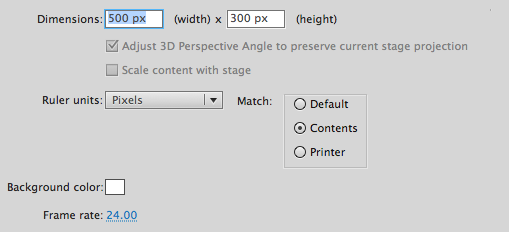 Open Flash and create a 500x300px document. Set the frame rate to 24fps.