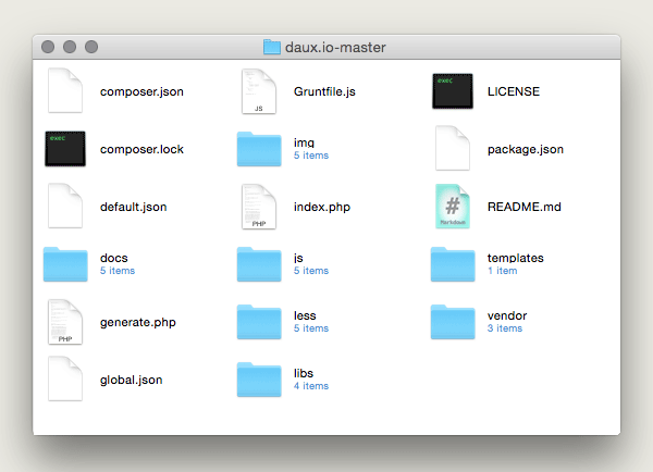 If you download from Github you should end up with a folder named “daux.io-master”.
