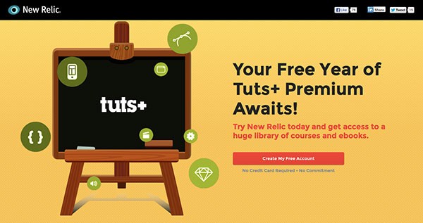 We're currently running a fantastic promotion with New Relic. It's simple. Create a free account and deploy New Relic, then you'll immediately receive a coupon code for a free, one year Tuts+ Premium membership.