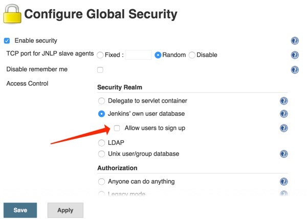 Then, return to the Configure Global Security page and turn off the checkbox beside "Allow users to sign up":