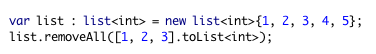 To modify a list, we have a wide range of weapons: remove, removeAll, removeWhere, removeHead, removeTail, etc.