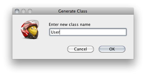 Type the class name in a pop-up box.