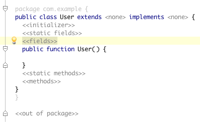 Build a module with Ctrl-F9 and take a look at the Output window. The generated pure AS3 code of Main() will look like this: