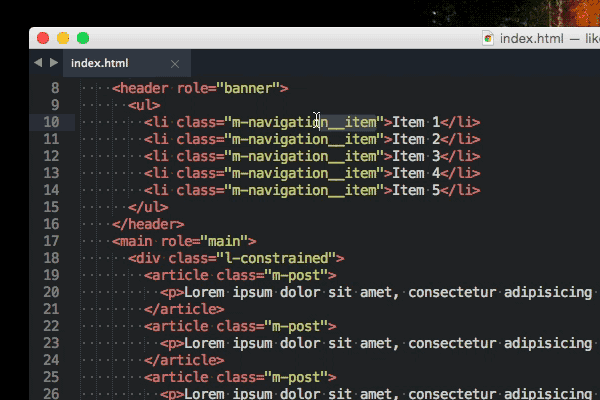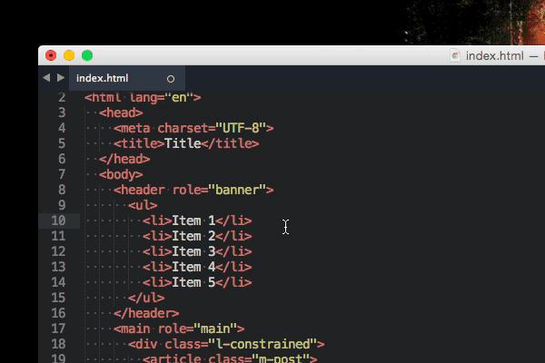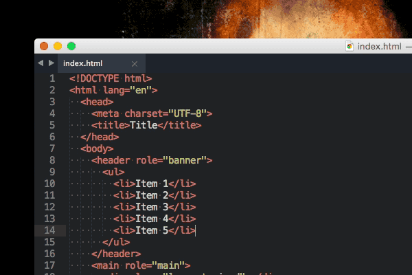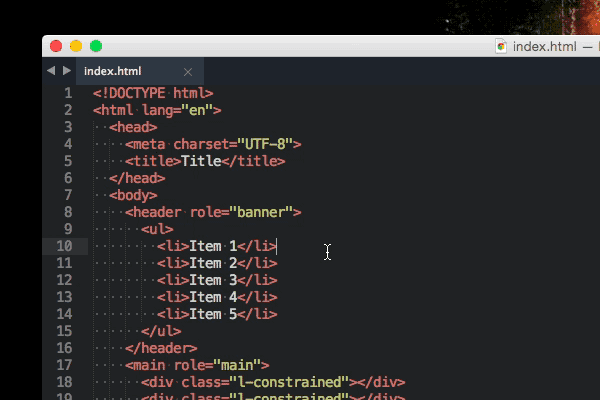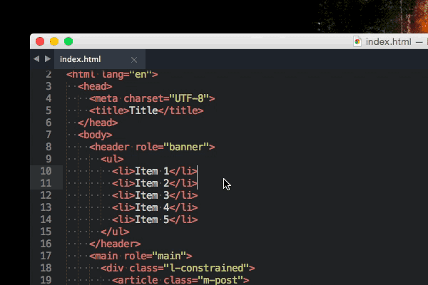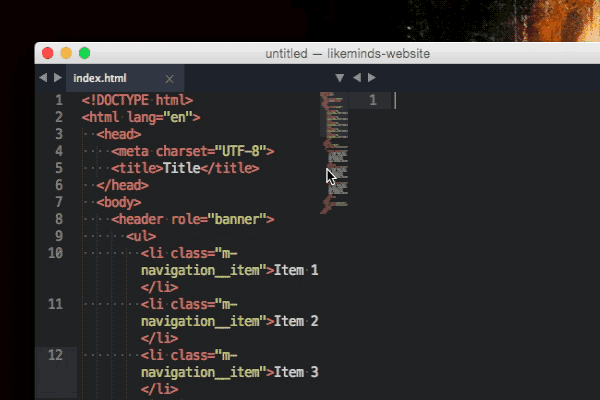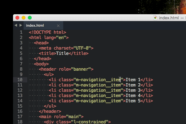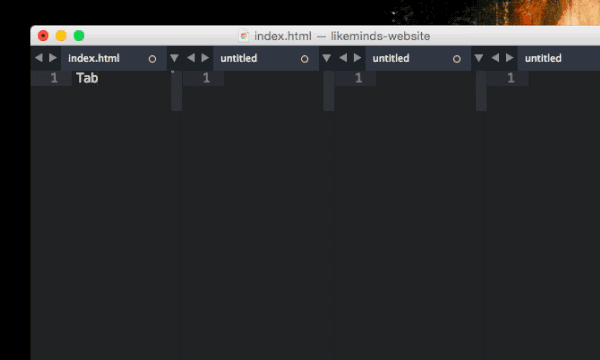 Tabs are an awesome way to give you an overview of your current project. More often than not you’ll use one tab for HTML files, another one for CSS and sometimes a last one for JavaScript. With these quick shortcuts it’s possible to create tabs fast: