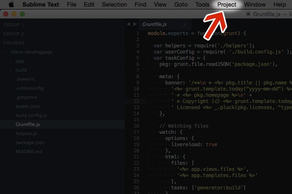 Not good enough. Let’s say that you worked on a file yesterday evening and this morning you want to carry on where you left off. The workflow we’ve mentioned is pretty inefficient, so instead let me turn your attention to Project in Sublime Text’s menubar: