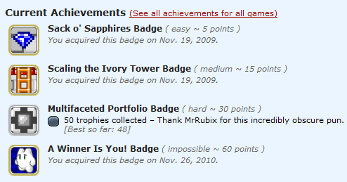 The second and far more important use, is to allow Kongregate to use the stats you submit to create "badges" for your games. Badges are a central part of the Kongregate user experience, and are much like the achievement systems on platforms such as Xbox LIVE.