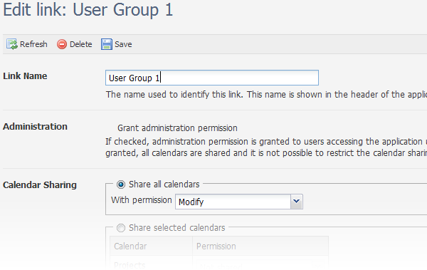 I like this approach because it completely gets rid of the registration process for each individual user making it dead simple to add new team members to a calendar. For a small team like mine, this makes perfect sense. On the downside, you don't get the usual perks associated with the system knowing each individual user. For example, there is no way to tell which team member added a certain task, and there is nothing preventing a miscreant on the team from messing around with the schedule of the rest of the team for whatever reason.