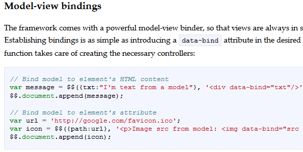 eyeballs.js is a slim javascript library designed to sit on top of a javascript framework, such as jQuery or Prototype. eyeballs.js can sit on top of an already implemented web app with a well thought out object model. It can also be used to build standalone javascript apps, backed by HTML5 local storage or something like CouchDB.