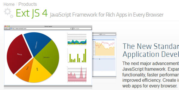 Ext JS 4 brings a whole new way to build client applications, by introducing the popular model-view-controller pattern to Ext JS. By allowing the separation of data management, logic and interface elements, Ext JS 4 makes it easier for even large development teams to work independently without worrying about stepping on each other's toes. Ext JS 4 ships with a helpful MVC guide to get started.
