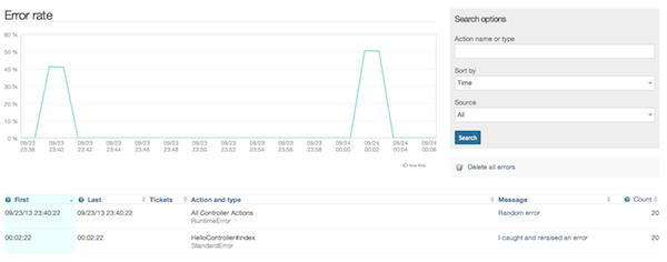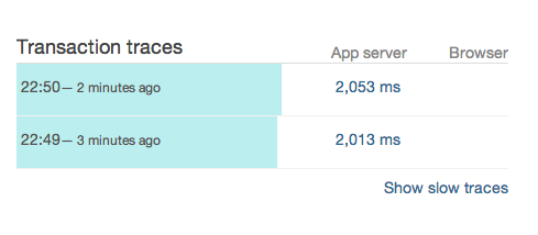 There are services specifically dedicated to capturing errors from your application, some of the most well known ones are Airbrake and Bugsnag. These are paid services used by many application, but the functionality that New Relic provides just about makes these services redundant. In fact if we could send custom errors to New Relic (rather than letting it capture errors that we hadn't rescued) we could make a compelling case for not using a separate error collection service (and save some money and get rid of an extra gem in the process).