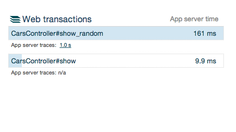 New Relic has kindly highlighted for us where we lost those two seconds. We need to look at our controller code after a Car.find call: