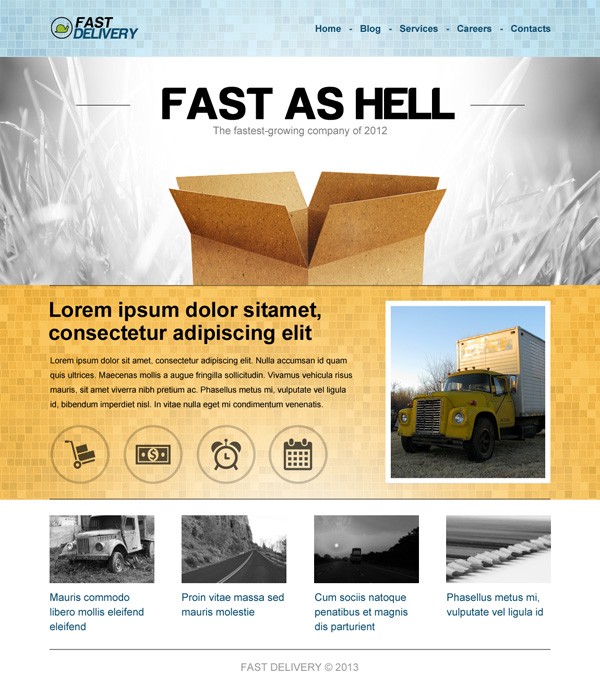 For this tutorial, I designed a simple website of a fake company named FastDelivery. Here's a screenshot of the complete design:
