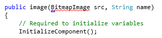 Let's start with coding the image class. Make sure you are currently editing the "image.xaml.cs" file and add the following declarations right above the constructor "public image()":