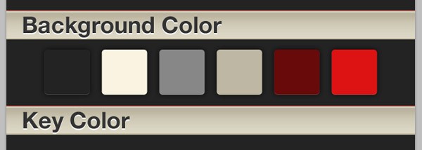 Copy one of your shape layers and position its content beneath the preset themes category bar. These themes are going to represent a preset theme consisting of a background color, key color and screen color. Apply a new gradient overlay to your first shape, this time using a total of six color swatches in your gradient bar with positions: 0, 49, 50, 74, 75 and 100.