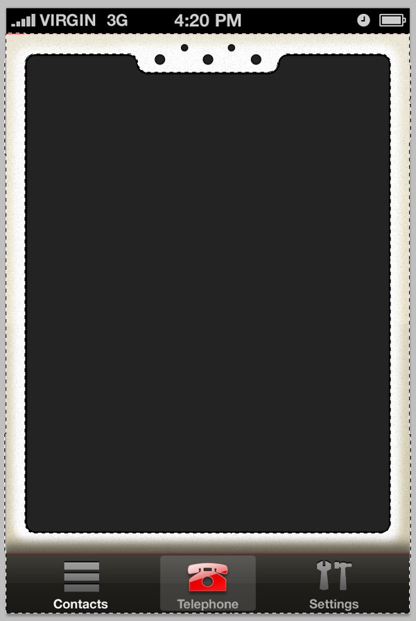 Duplicate the Settings folder and rename it to "Telephone". Hide the original Settings layer. Remove all the color swatches, category bars, and title. Also make your telephone icon appear active using the techniques we used earlier (copying and pasting layer styles).