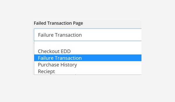 Again, EDD automatically creates the Failed Transaction page for you. All you have to do is see if the correct one is selected here.