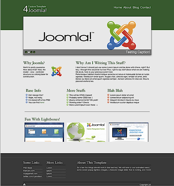 That being said, this tutorial will demonstrate how to proceed from design to deployment of a complete Joomla template theme, including core override and template option parameters that you can use and abuse to your hearts content.