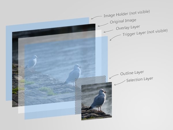 First, this function sets the properties of the outline layer: the cursor, the display, the size and its position. Next comes the selection layer; the new value of the background position will make the images overlap seamlessly.
