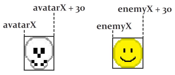Here, the avatar and the enemy are overlapping. We have: avatarX