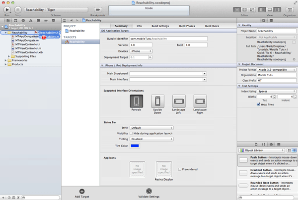 Integrating Tony Million's Reachability class is trivial. Visit the project's GitHub page, download the latest version, and drag Reachability.h/.m into your Xcode project (figure 3). If you take this path, make sure to copy the class files into your Xcode project (figure 4). You can also use CocoaPods to to add Reachability to your project.