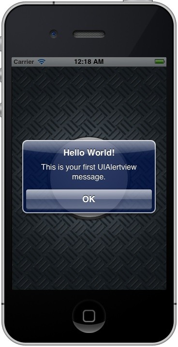After creating an alert object, the [message show] call actually shows our message by popping our new UIAlertView onto the screen.