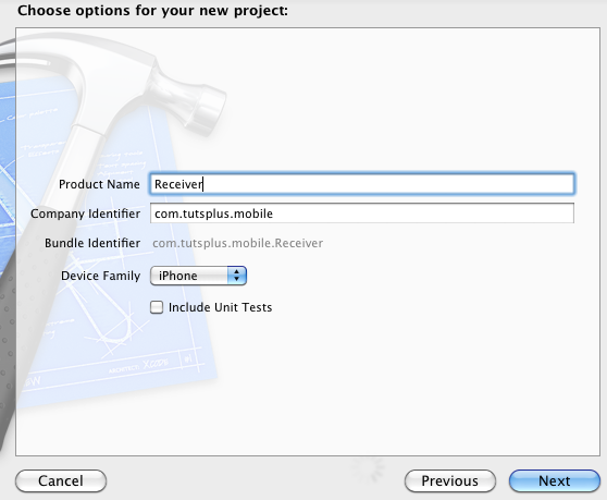 Create a new XCode project, and select “View Based Application." Hit next. Name the project “Receiver" and enter your Company Identifier. This project will house the app that reads information sent by the “Sender" app.