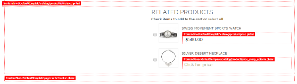 Next is fixing the related section. We can see by enabling template hints that this portion of page is coming from the file: template\catalog\product\list\related.phtml.