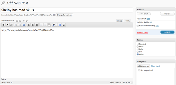 In this tutorial we will cover what post formats are, how to use them, what they can do for you.