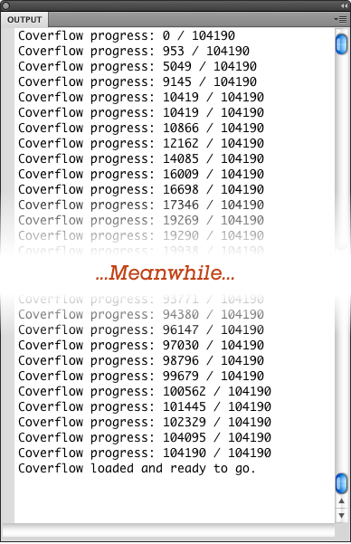 This was not a small project. Depending on your experience with Flash and ActionScript, you probably learned a thing or two, aside from how to recreate the CoverFlow view in Flash. Some of the more advanced topics included BitmapData, manual tweening, 3D depth sorting and 3D perspective management.