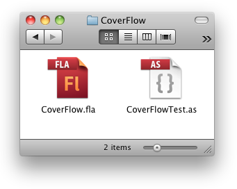 Now create another text file called CoverFlow.as inside of the coverflow folder.