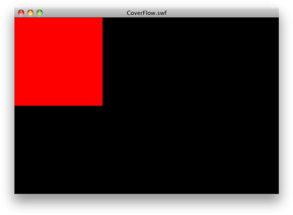 Now, instead of tracing to the Output panel, you should see a red square appear in the upper left corner of your movie. If that happens, we're pretty much set to continue working. What this means is that not only is the code executing all the way down to the individual Cover object, but we've successfully added elements to the stage so that we can create visual objects.
