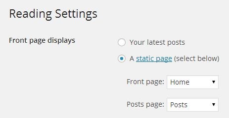 - For "Posts Page", choose the "Post" or "Blog" page you created.