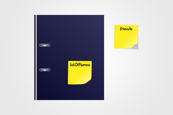 Actually, no! All we do is stick this new listOfNames Post-it note onto the same binder as the friends Post-it note.