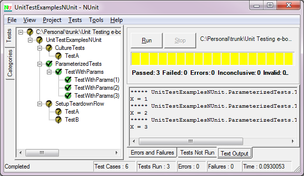 Another before all test fixtures. Another after all test fixtures. Before all test fixtures. Fixture Setup. ***** UnitTestExamplesNUnit.SetupTeardownFlow.TestA Test Setup. Test A. Test Teardown. ***** UnitTestExamplesNUnit.SetupTeardownFlow.TestB Test Setup. Test B. Test Teardown. Fixture Teardown. After all test fixtures.