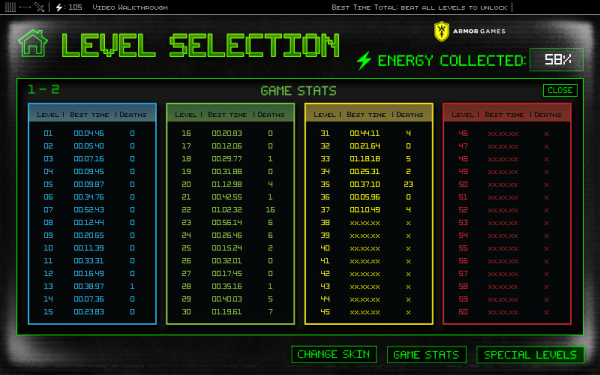 In addition to the unlockables, the game also keeps track of a ton of stats, such as your best times and lowest death count for each level. Small features like this make for great replay value, and add a lot to the game.